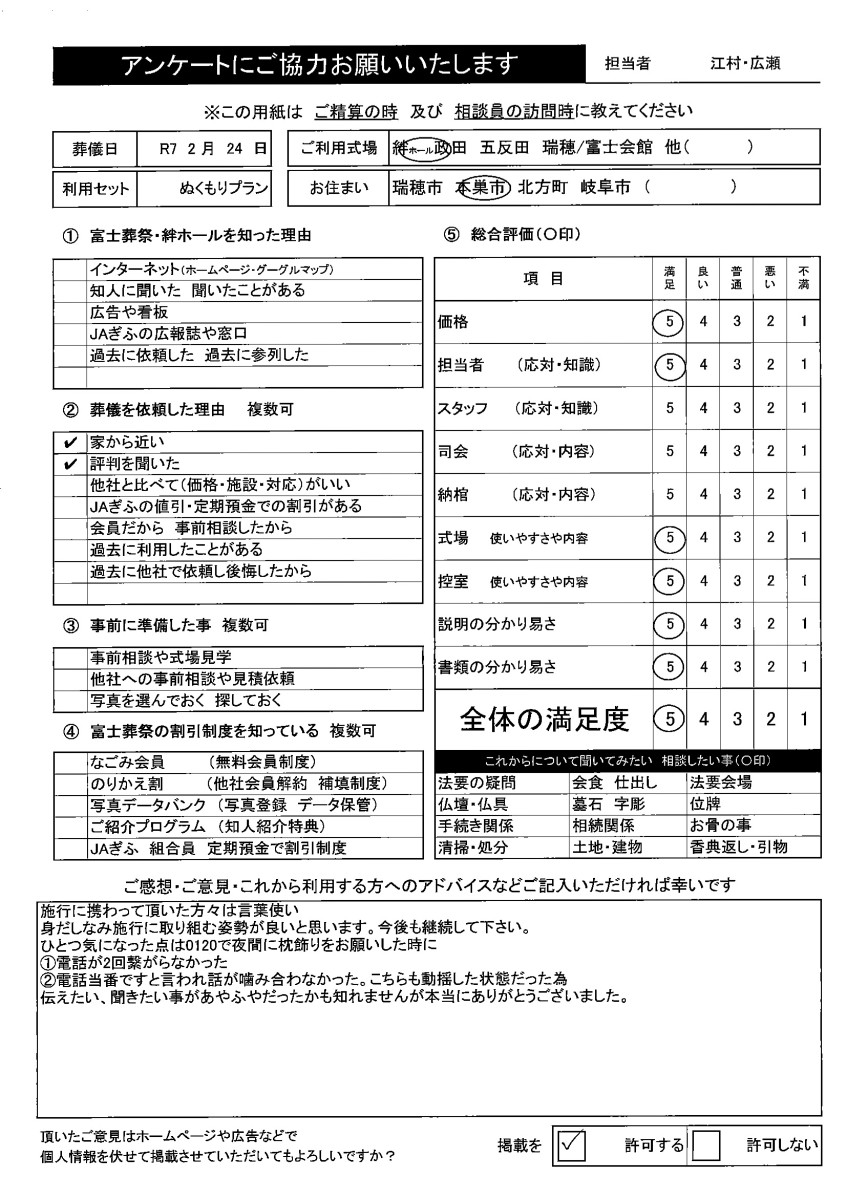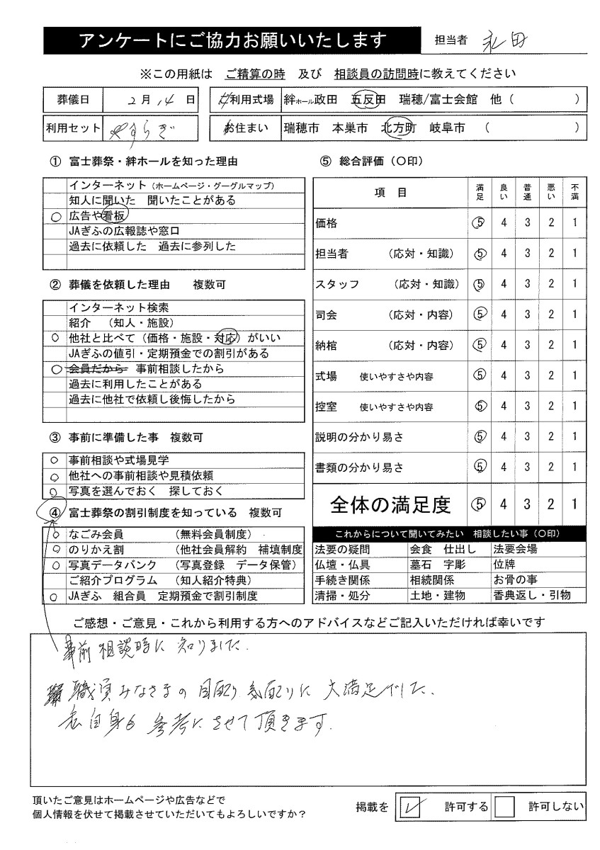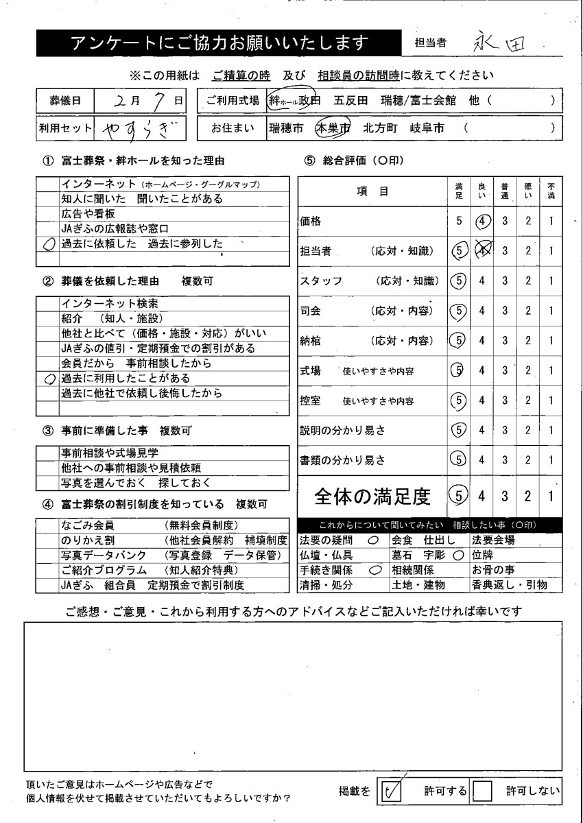 何事もなく無事に葬儀が終えたこと、非常に感謝しております。